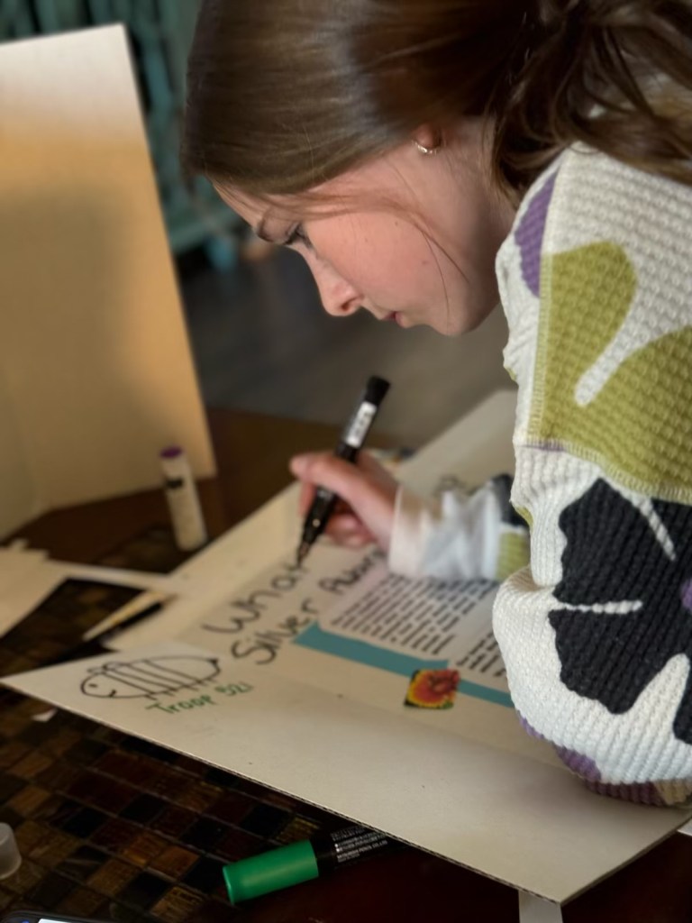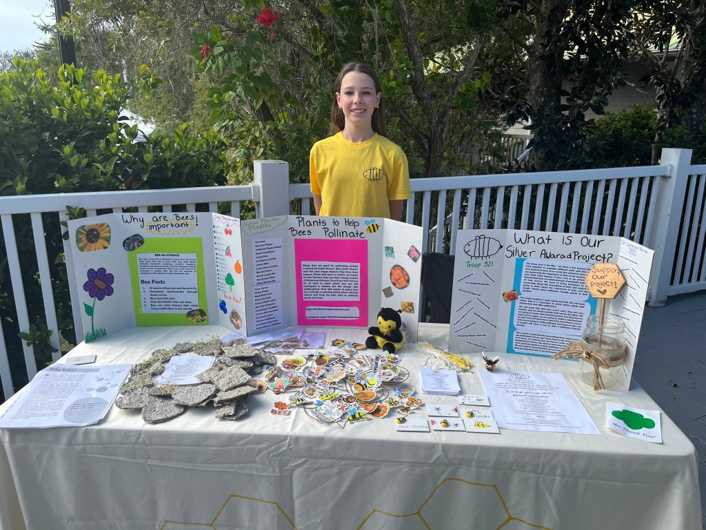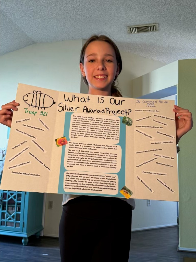 My leadership role was to conduct research about bees, and their importance. I did a lot of the research and made posters and a slide deck that we shared with people so they could learn the importance of bees. I researched the types of flowers and plants that the bees are attracted to. I shared this information on a poster with the people at the plant sale at the botanical gardens and shared the slide deck with our school’s 7th grade life science teachers and they used this information with their students. The seventh graders used the information in our slide deck to make seed paper that they could take home and plant for their own pollinator gardens. I helped update the website with information about our project.